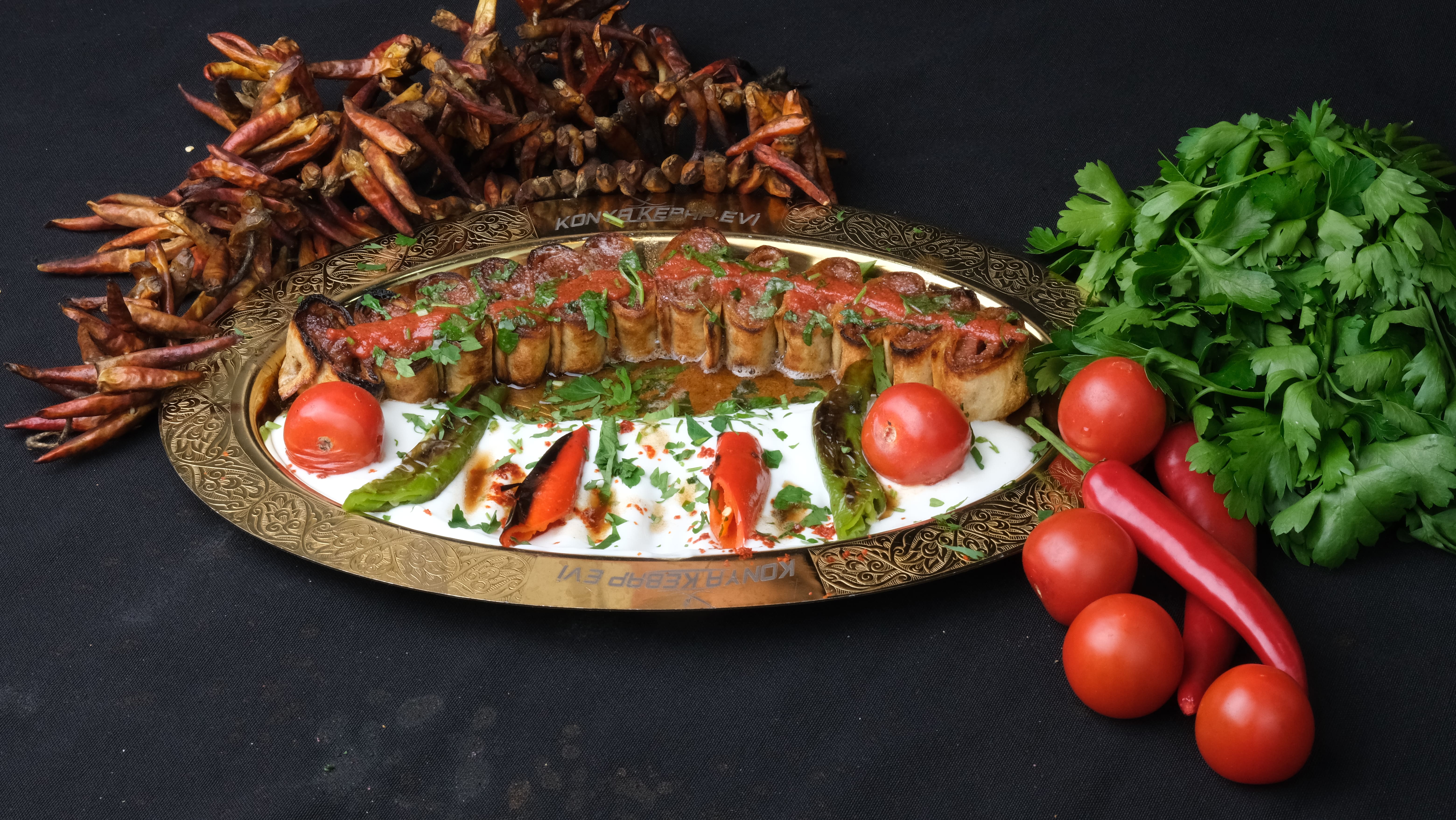 Yöresel mutfağın gözdesi: Köz patlıcan yatağında sunulan yumuşacık et; sıcak, dumanlı ve eşsiz aromasıyla damakta iz bırakır.